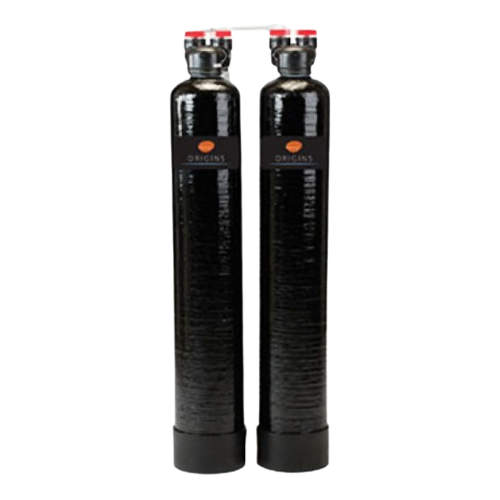 Two tank, non-electric whole house filtration system with scale prevention treatment. The salt free, environmentally friendly technology is based on a process called “seed crystallization”, which coverts Calcium and Magnesium ions into millions of microscopic Calcium Carbonate “seed crystals”. These microscopic crystals are so small they travel with the water and do not attach to surfaces.